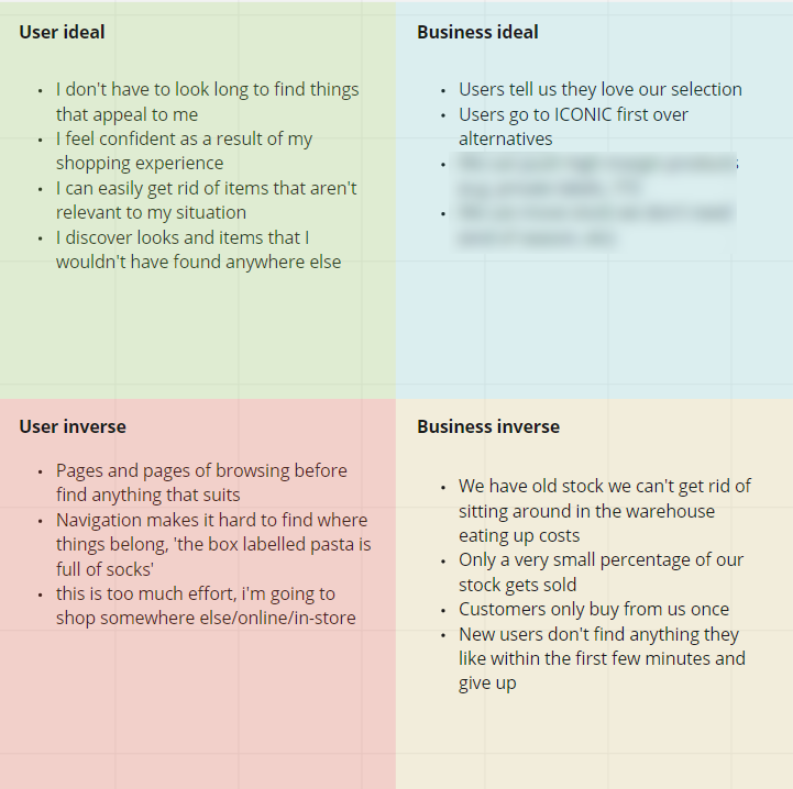 In addition to growth and discoverability issues, our mobile (both app and web) interface patterns were outdated and not designed for the current breadth of products sold by THE ICONIC. This meant that customers didn’t even realise we sold some of the items we did.